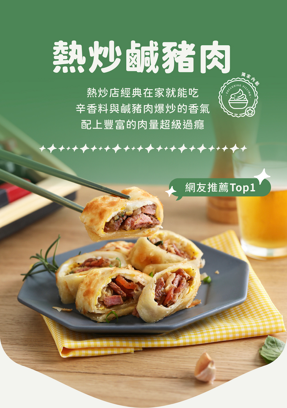 - 料理包內容物:酥脆蛋餅皮7片 x 獨家餡料包2包 x 美味配料包1包(內餡口味不得更換)